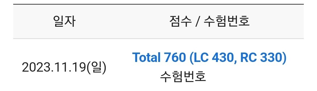 몇 년 전 응시했던 시험보다 100점 가량이 떨어졌어요. 특히 독해 부분 점수가 많이 아쉽네요. 시험 시간 모자라지 않게 잘 풀었는데, 그저 답안지 작성만 잘한 것 같아 스스로에게 살짝 실망감이 들었지만 시험 자체를 몇 년 만에 본 탓이라 그렇다 자기기만을 해버렸습니다.